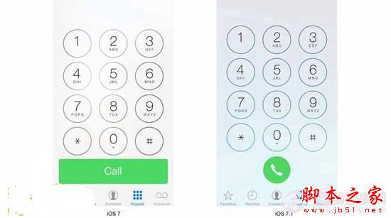 虽然ios 7.1圆形的号码键被保留了下来,但长条形的拨号键也变成了圆形。