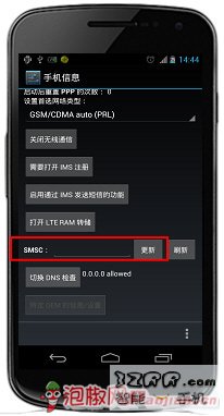 新入日版三太子,刷过ROM后,插入SIM卡,能打电话,能收短信,但就是发不出短信,我知道肯定是短信中心号码需要设置一下,于是电询10086(不要从网上搜,以免有误),我所在本地短信中心号码为:+8613800551500,以前用过SB和WM系统的机器,短信中心号码设置非常简单,第一次用安卓手机,于是凭以前用手机的经验在手机设置、短信设置里猛找短信中心号码配置的地方,死活找不到啊!于是上网搜了一下,发现安卓系统的手机要在工程模式里设置短信中心号码,具体是在电话拨号界面输入:*#*#4636#*#*,如图(注意:下图中少一个*):