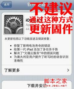 升级前建议最好先备份iPhone,然后进入DFU模式,通过iTunes刷固件。如果是OTA方式升级固件(即在iPhone--通用--关于本机中直接更新固件),在后期会出问题,所以不建议通过OTA方式更新固件。