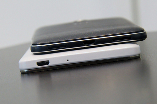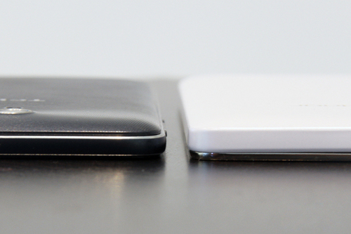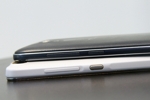 按键布置方面,这两款手机都很好地把电源键和音量键放在了机身右侧,右手握持时很容易触摸到,按键反馈灵敏,键程适中。两者都默契地把耳机接口和USB接口分别放在了机身顶部和底部。
