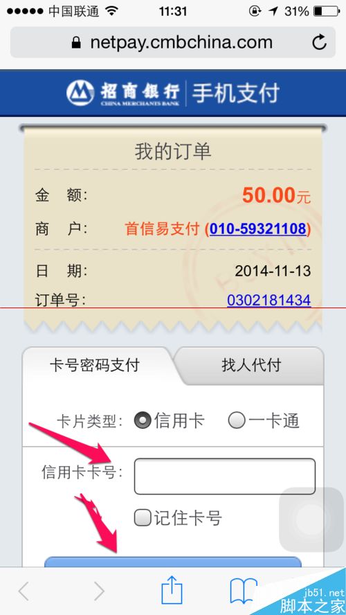 8、在这里输入卡号验证银行信息,完成订单的付款。