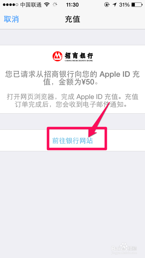 7、接着点击前往银行网站。