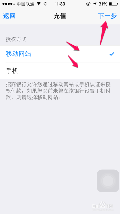 6、选择付款银行的支付方式,小编选择移动网站。