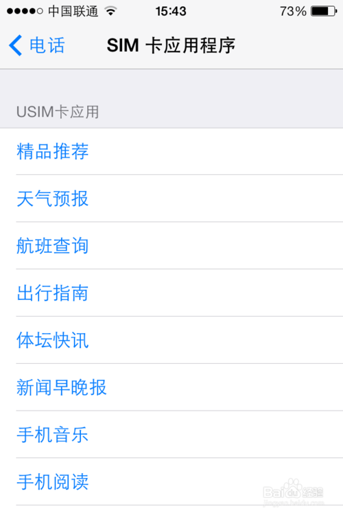 2、在弹出的新界面内,选择最下方的"SIM卡应用程序"