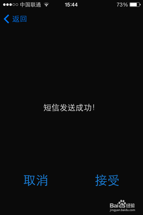 5、点击接受短信后,会出现如下提示,到此,iPhone4碰到的“sim卡发送了一条文本信息”就会终止