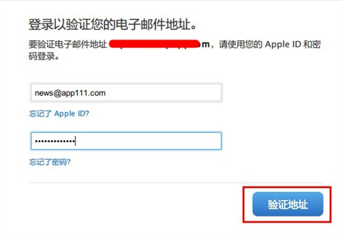 在新的页面里填写上我们注册的AppleID和密码,点击“验证地址”