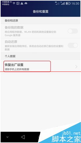 8、以上所以方法都不行,备份手机资料,将手机回复出厂设置试试。