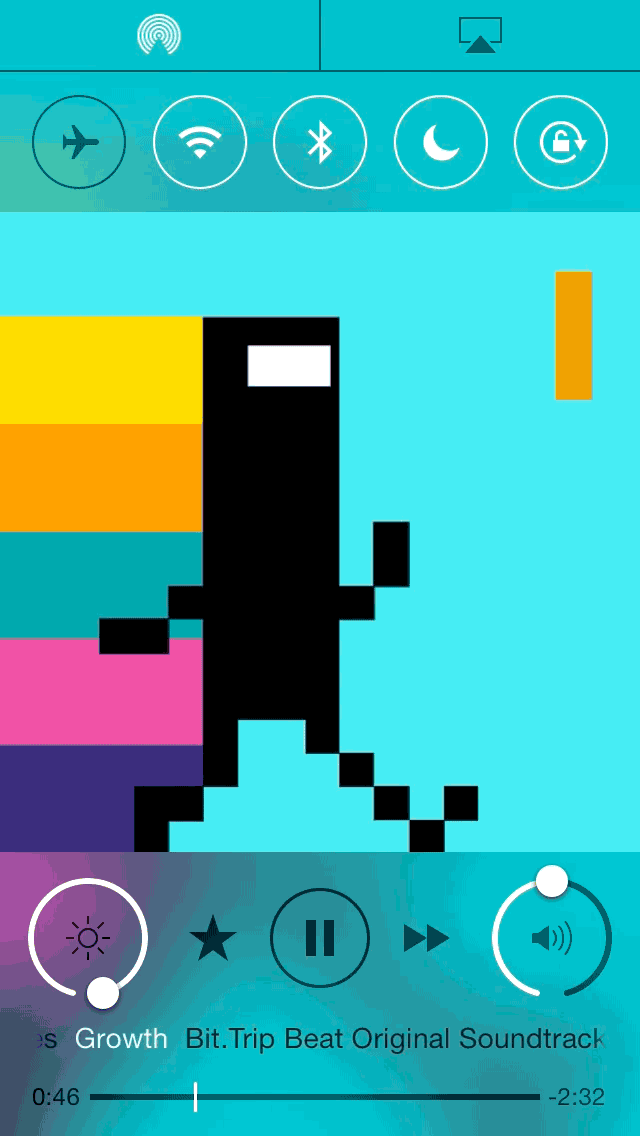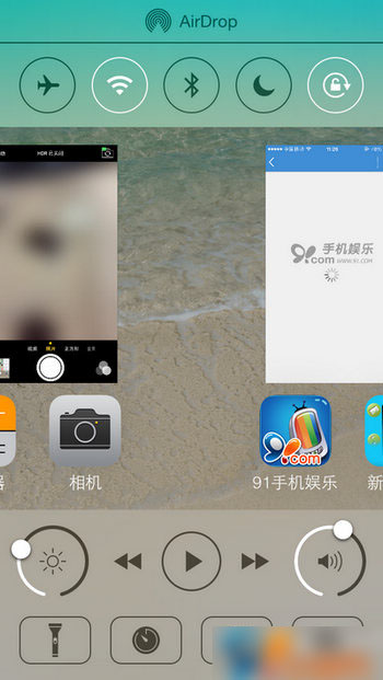 开启该功能后,在打开控制中心AUXO 2会自动隐藏AirDrop/AirPla快捷控制栏以及底部快捷应用开关,当然你也可以通过下拉或者上拉快捷开关控制打开。