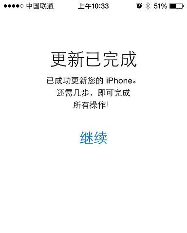 iPhone5s会自动重启,简单完成iOS8设置向导,即可完成升级,如下图所示。