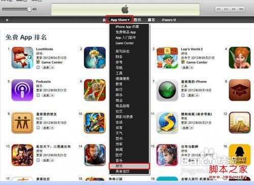 5)点击App Store的下拉菜单,可以看到里面分门别类很清爽地列出了多个种类,假设想要下载游戏,就点击游戏