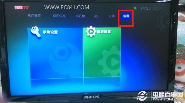 2、在小米盒子电视画面主界面,我们首先选择“设置”,如下图所示: