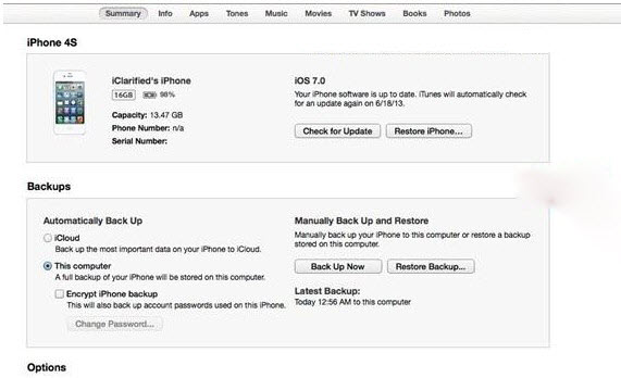 尽管iOS 7恢复降至iOS 6系统并不是很复杂,不过这里还是建议打算将iOS 6升级到iOS 7的朋友,注意升级前备份数据,另外需要对iOS 7测试版的Bug有一定的了解与认识,以免折腾的身心疲惫,以上为大家演示的是英文版iTunes,大家可以下载中文版操作。