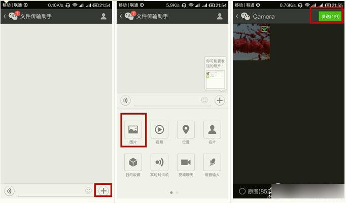 我们可以开始传输文件了,单击+,然后选择你要传输文件,发送就OK啦!