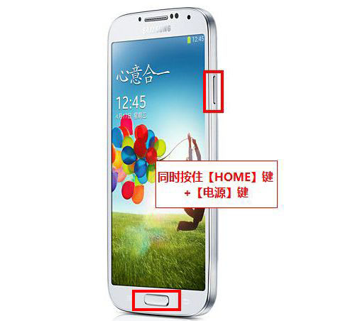 一)第一种截图方法就是在待机状态下,同时按住屏幕下方的【HOME】键和机身右侧上方的【电源】键,听到声音或振动后松手,就可以截取屏幕了。(如下图所示)