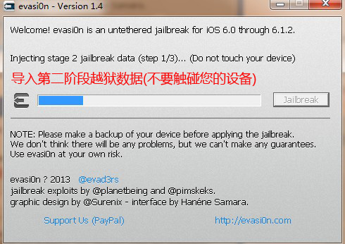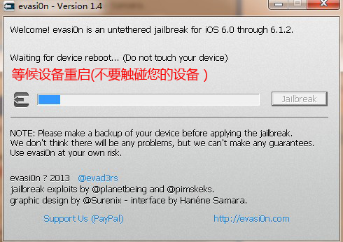 【evasi0n】工具运行过程中请勿断开连接……