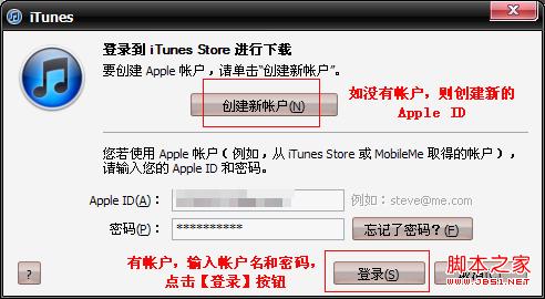 步骤3:点击右上角【登录】按钮,弹出用户登录对话框。如没有注册过苹果账号,请点击XXXXXXX。