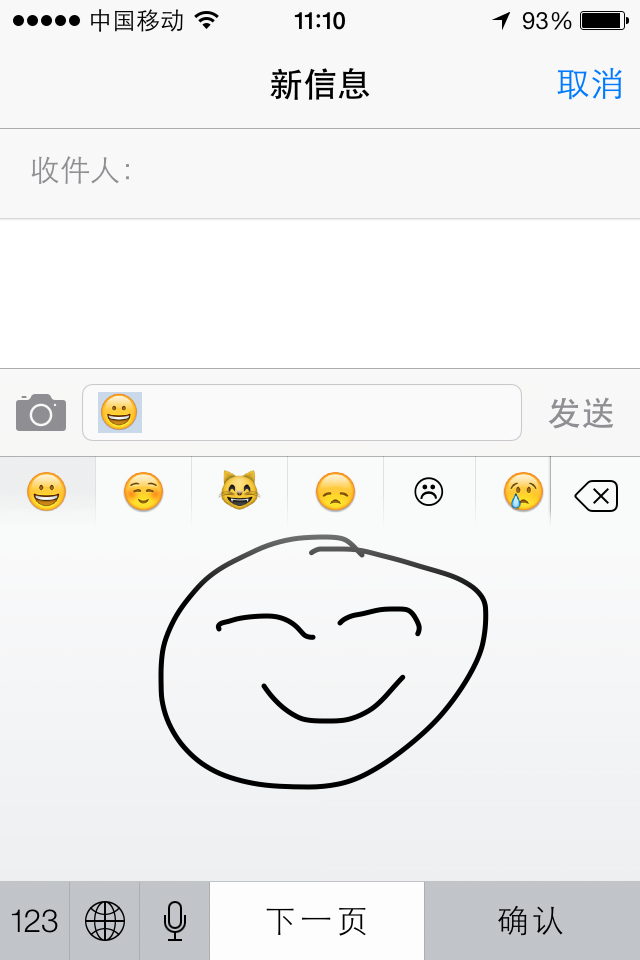这简直是ios 7最可爱的变革了!在输入法写字板里面画图也能识别出表情图案,打字变得有趣多了!