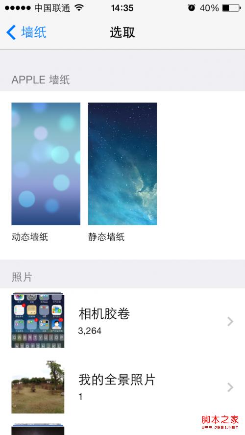 ios7终于可以添加全景的墙纸了,横形长方图做墙纸终于不尴尬!还有自带的动态墙纸可选择!