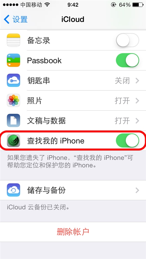 打开手机的iCloud功能,在iCloud设置页面打开 查找我的iPhone这个选项,并且iCloud和这个选项一直保持开着!