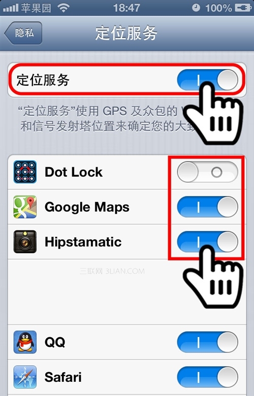 在iPhone的设置中,不但可以对具体应用的定位服务进行开关操作,还可以对整机的服务进行关闭。操作方法上目前有两种,下面苹果园的小编逐一为您分解: