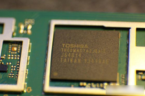 图为华为荣耀X1内置的东芝品牌存储芯片特写,其容量为16GB。