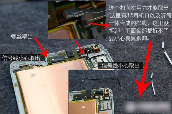 荣耀X1拆机拥有很多需要注意的地方,包括取出螺丝、信号线以及各种排线等,如下图所示: