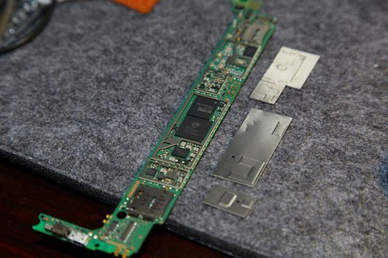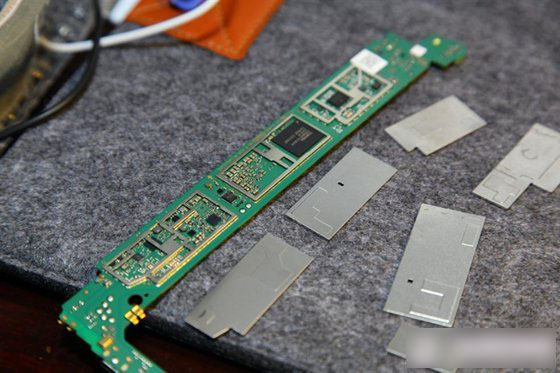 华为荣耀X1采用了L型主板设计,取出电池后,就可以取出主板了,下面为主板拆解特写。
