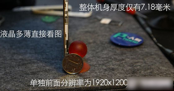 华为荣耀X1机身厚度仅7.18mm,整机十分纤薄,从拆解的内部看,这款采用7英寸1080P全高清屏幕的手机,液晶屏幕相当薄。