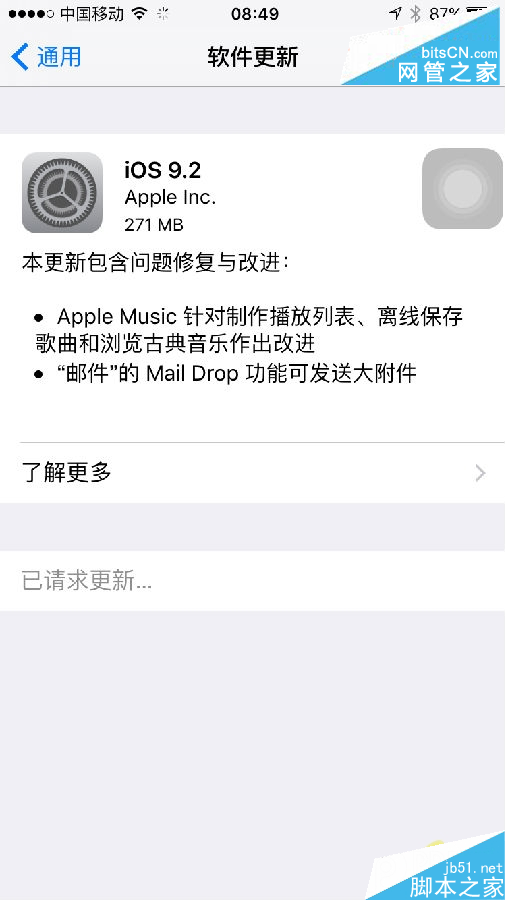 升级iOS9.2显示已请求更新原因:
