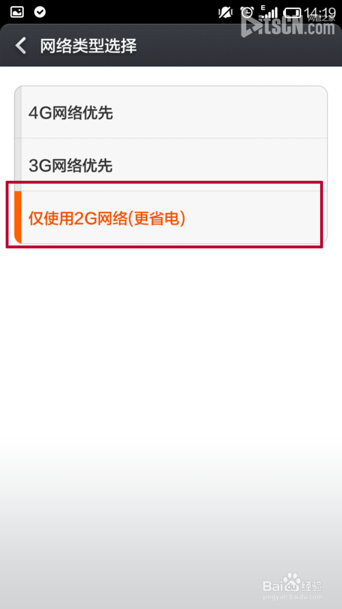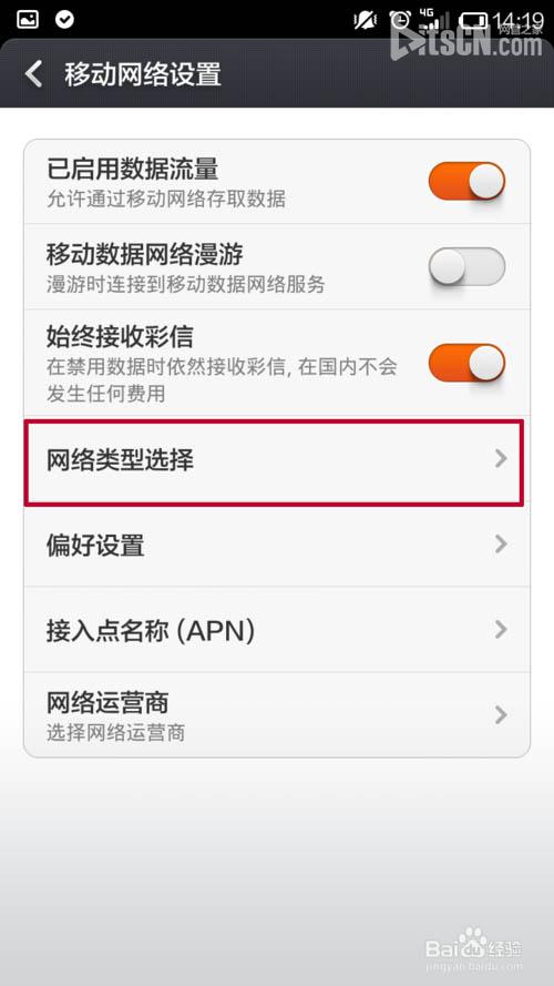 6、我们可以开启4g网络,但是一定要注意流量,我们要是不用的时候可以,切换到2G网络,不但可以省电,也不会错过别人给你发的消息。
