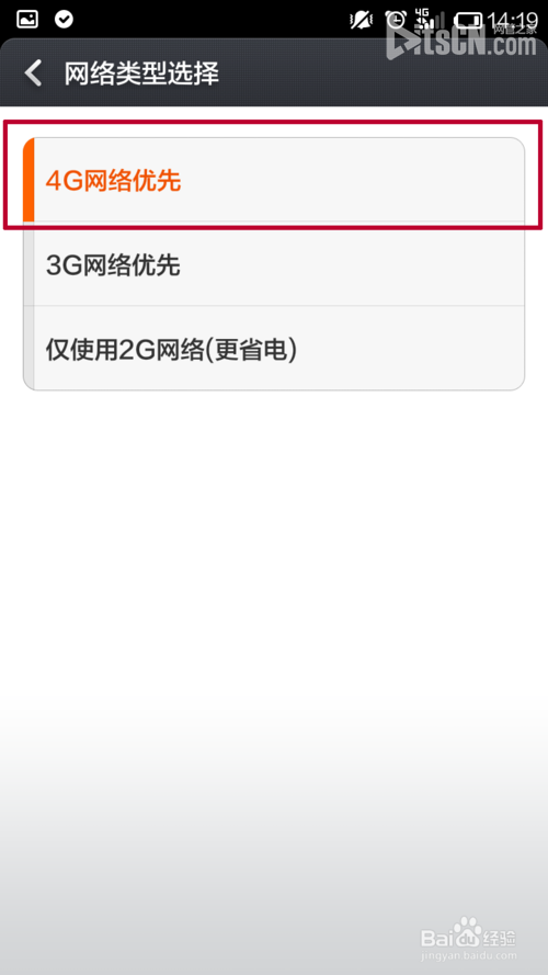 5、我们在网络类型这里,点击4G网络优先,我们稍等一下,右上角就会给我搜索4G信号,就成功开启了