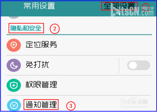1、找到手机的设置,一般的图标就是一个小齿轮的那个,打开后找到【安全与隐私】部分,在这个分类下找到【通知管理】。
