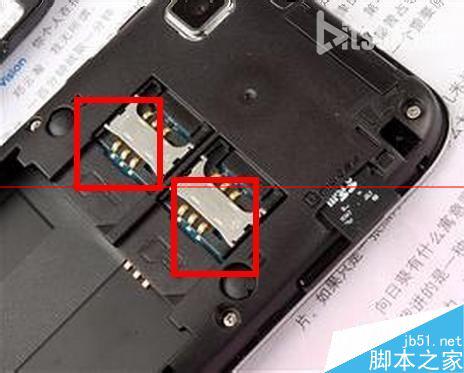 3、我们把两张sim卡分别放到手机的两个卡槽里,然后装上电池开机;