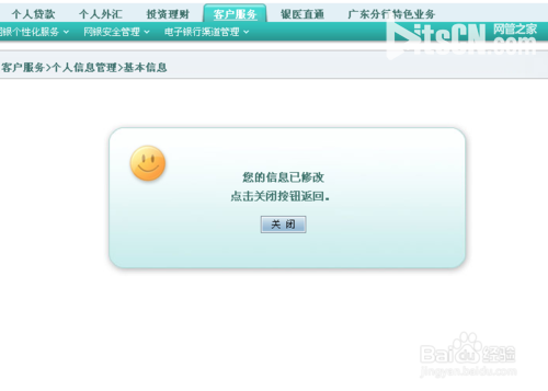 9、好啦!看到 “您的信息已修改” 后 ,点击关闭即可。这样预留手机号就算是修改成功了。