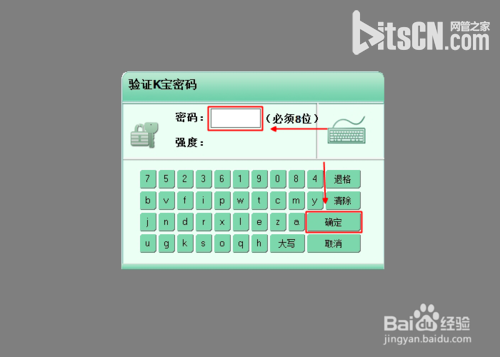 7、接着从弹出的验证K宝密码这里输入【 K宝密码 】点击【 确定 】