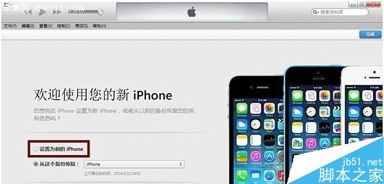 5、恢复完成之后,在 iTunes 上点击“设置为新的设备”。