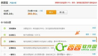 第二步、在功能设置页面中找到【定期转入】,点击【管理】可以看到定期规则设置。