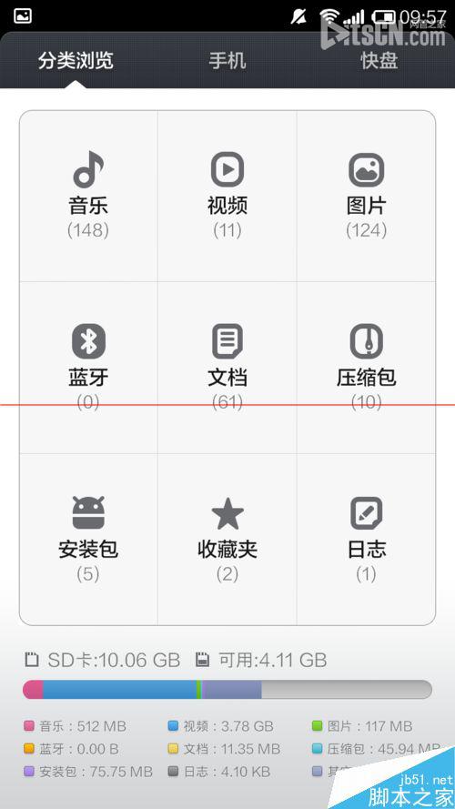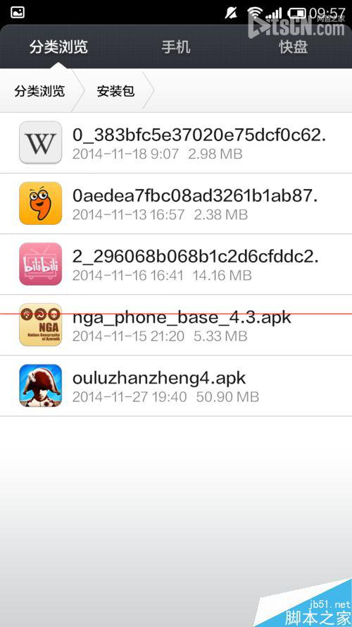 2、在这里你会看到你手机中所拥有的文件,包括图片, 影音,安装包等等,我们以安装包为例。