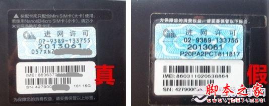 入网许可证位置不相同,真机许可证是贴在证书上方的,假机是贴在证书下方。