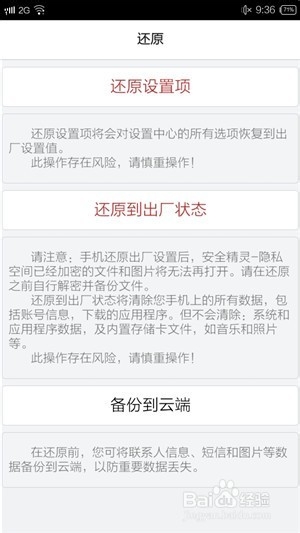 设置方法:设置→更多→还原→备份到云端→还原到出厂状态