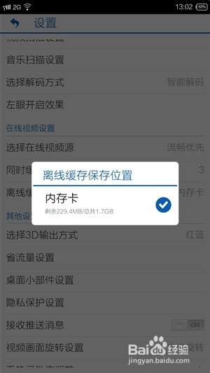 操作方法:设置→离线缓存保存位置→存储卡(本版版买不起存储卡,在这不做具体演示)