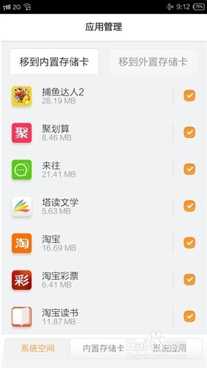 建议:常用的比如QQ、来往这些移动到内置存储,方便拔卡后还可正常使用。占容量大的移动到外置存储卡。