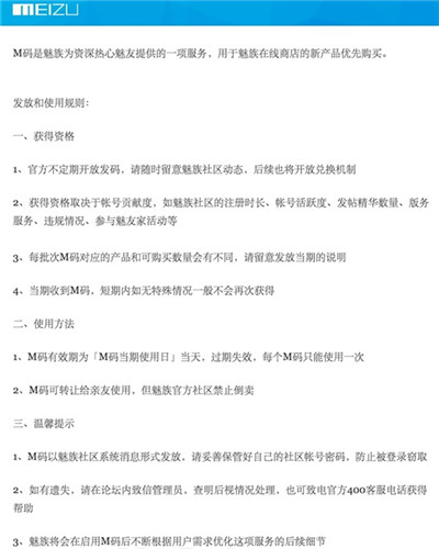 3、魅族将会在启用M码后不断根据用户需求优化这项服务的后续细节。