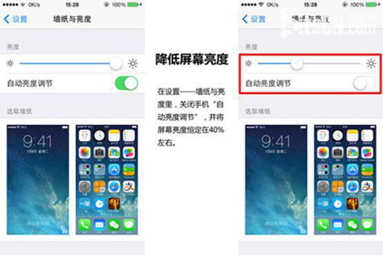 1、控制屏幕亮度和动态效果:屏幕越大越耗电,设置----显示与亮度中关闭“自动亮度调节”,将亮度恒定约40%左右,能明显降低掉电速度。同时,在设置----通用----辅助功能----选择打开“减少动态效果”,既省电又能防晕眩!