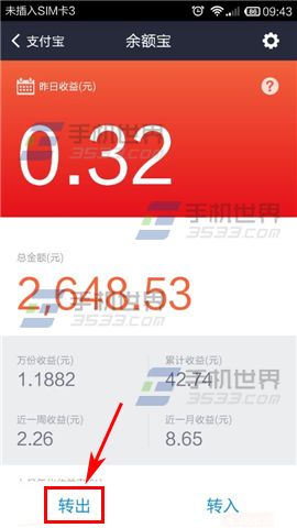 2)在余额宝页面后,点击下方的【转出】按钮,接着点击【转出到余额】。(如下图)