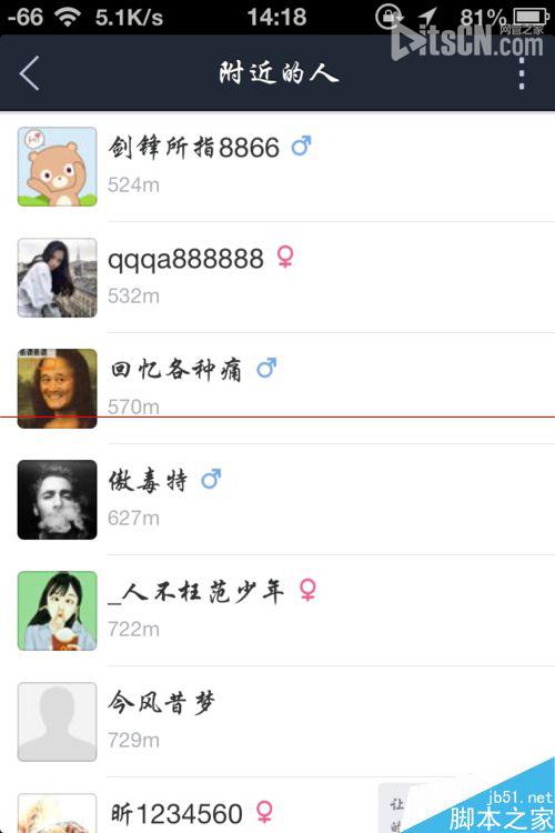 3、从附近的人里找到想要添加的好友,如图所示,可以只看男生或者女生。