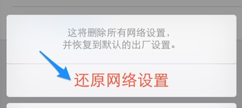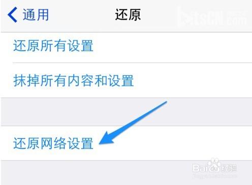 6、最后再点击底部的“还原网络设置”就可以了。还原以后再尝试重新连接网络,一般情况都可以解决,如果都不能解决的话,还有一种情况是手机的WIFI损坏了,建议拿手机维修店检修。
