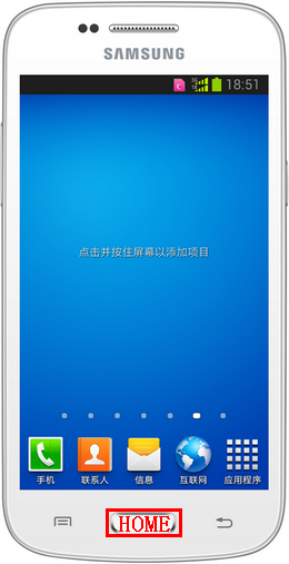 在待机页面下,点住【HMOE】键。