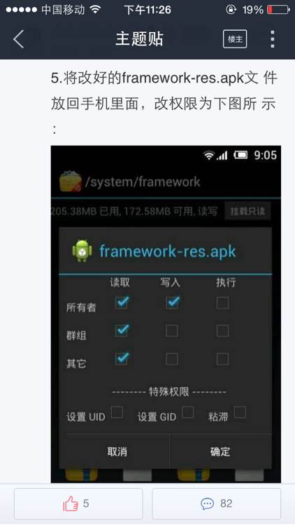5、将改好的framework-res.apk文件放回手机里面,改权限为下图所示: