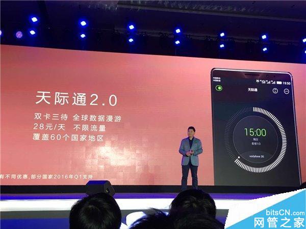 全新的天际通2.0,覆盖60多个国家和地区,可以实现双卡三待,天际通以单独一个单独信号标志显示,28元每天,不限流量。